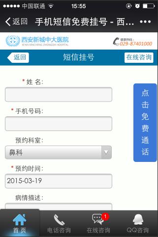 西安中大耳鼻喉医院启用微信在线支付是一次创新和推进的举措,更是医院实现医疗服务智能化的智慧通道。市民不仅可以了解医院预约挂号信息,而且还可以通过微信预约挂号,实现“随时随地触手可及”的预约挂号服务,这也解决了看病“三长一短”(挂号排队时间长、看病等待时间长、结算排队时间长、医生看病时间短)的问题。医院相关负责人表示:微信公众服务号将努力打造“口袋里的医院”,成为广大市民就医的健康快速通道。